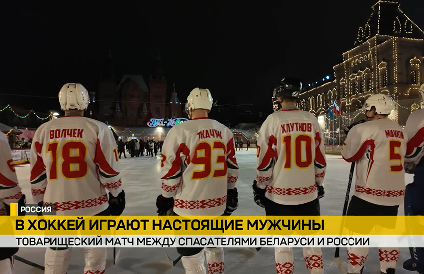 В хоккей играют настоящие мужчины. Такие же служат и в МЧС. На Красной площади в Москве состоялся товарищеский хоккейный матч между спасателями Беларуси и России. Это традиция, которая каждый год притягивает в центр российской столицы множество зрителей.