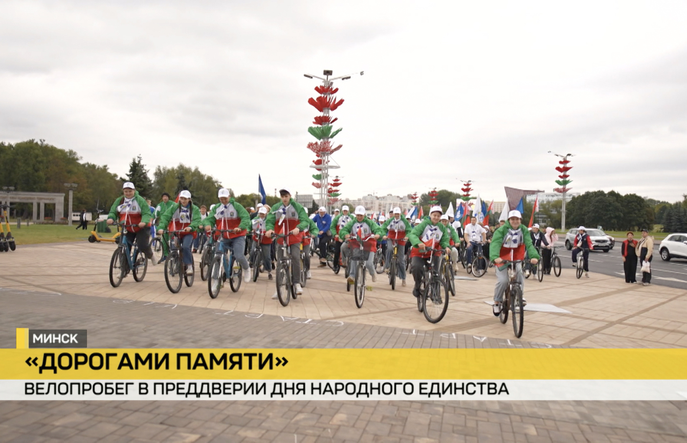 Старт в центре столицы – у стелы «Минск – город-герой». Здесь, по традиции, возложили цветы в память о погибших воинах.