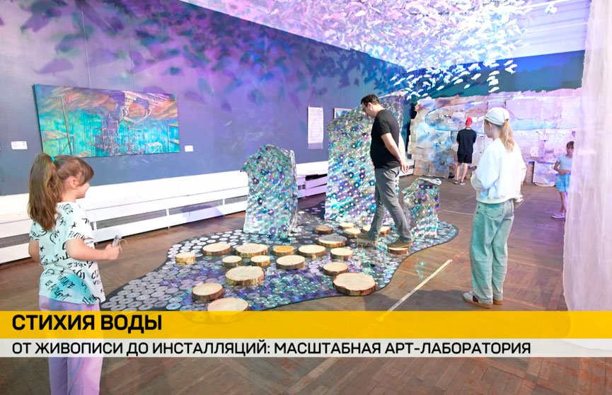 Первый и главный объект — вода. Здесь зрители могут увидеть, как современные художники переосмысливают стихию. Основа экспозиции — работы белорусских авторов в разных направлениях. От живописи и графики до цифрового искусства и инсталляций.