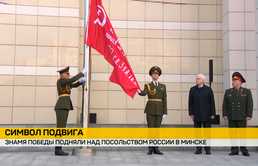 Знамя Победы подняли над посольством России в Минске