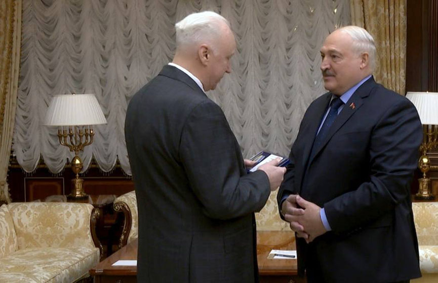 Президент Республики Беларусь Александр Лукашенко в ходе встречи с председателем Следственного комитета Российской Федерации Александром Бастрыкиным награжден медалью СК РФ. Об этом информирует пресс-служба Главы государства.