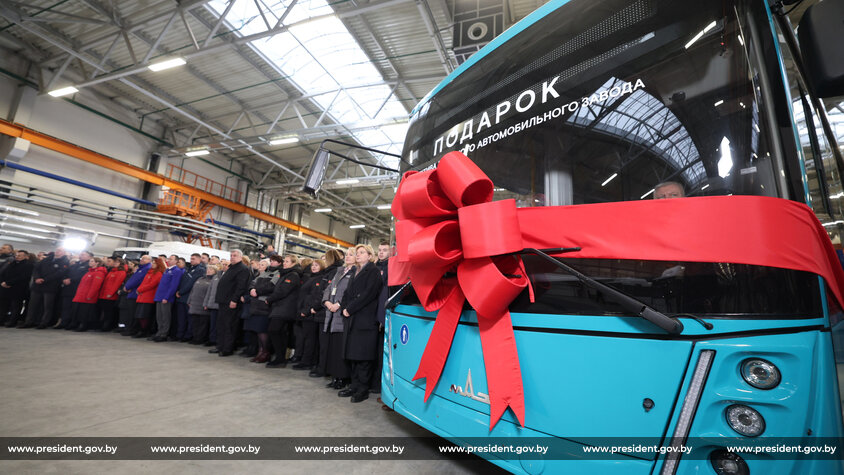 Во время посещения МАЗа Александру Лукашенко даже подарили пригородный автобус вместимостью 60 пассажиров, которые по его распоряжению передадут государственному учреждению образования «Социально-педагогический центр с приютом Заводского района г. Минска».