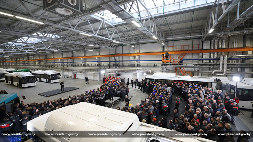 Далее в программе пребывания на заводе стояло посещение нового автобусного производства. Глава государства ознакомился, как идет его реконструкция, осмотрел модельный ряд пассажирской техники, выпускаемой на предприятии, посетил основные участки сборки.