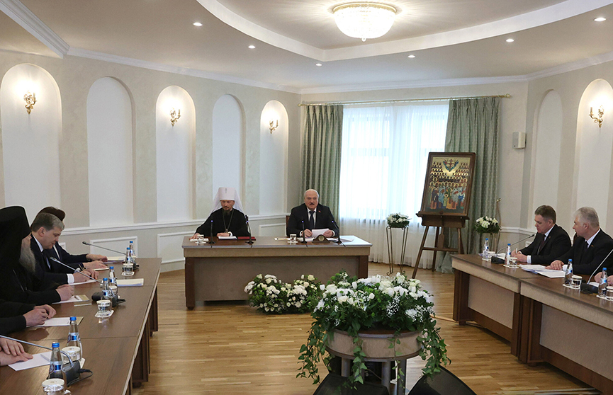 Президент отметил – встреча светской власти и духовенства имеет большое значение в современных геополитических условиях и накануне важных политических событий внутри страны. С этим согласен и митрополит Минский и Заславский, Патриарший Экзарх всея Беларуси Вениамин отметил: мир становится все более непредсказуемым, при этом фокус решения стоящих перед человечеством проблем перемещается в духовную сферу. А среди общих задач для государства и церкви – воспитание молодого поколения.