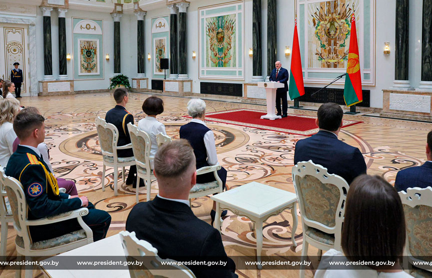 Слова благодарности Александр Лукашенко адресовал преподавателям – за воспитание молодежи, преданной родной стране, уважающей традиции и оберегающей ценности белорусского народа. А молодым людям, удостоенным государственных наград, напомнил о важности их вклада в процветание Беларуси и ценности для государства каждого гражданина.