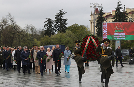 Делегаты VII ВНС возложили венки и цветы к монументу Победы в Минске