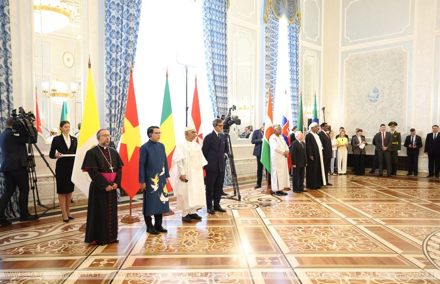 Президент отметил, что на территории Беларуси в атмосфере мира и взаимного уважения сосуществуют представители 130 национальностей и 25 религиозных конфессий.