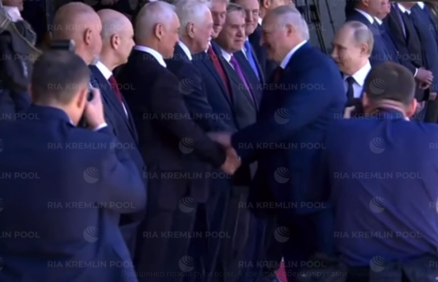 В ходе церемонии приветствия членов делегации Российской Федерации, возглавляемой Владимиром Путиным, Президент Республики Беларусь Александр Лукашенко пожал всем руки, но особо выделил нового министра обороны Андрея Белоусова. Кадрами делится RIA_Kremlinpool.