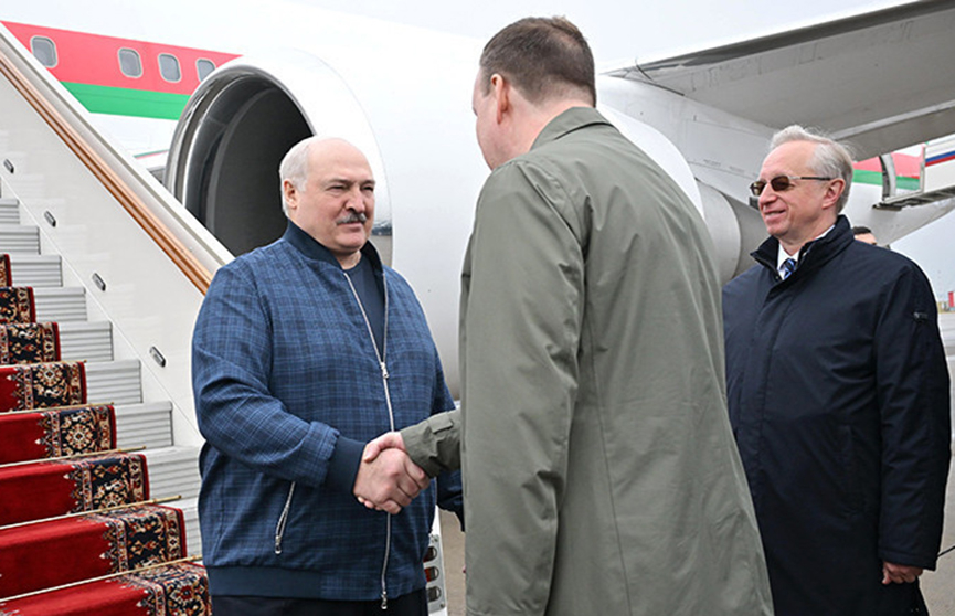 Белорусский лидер Александр Лукашенко 7 октября отправился с рабочим визитом в Москву. В аэропорту его встречала российская делегация. Кадры опубликовал Telegram-канал «Пул Первого».