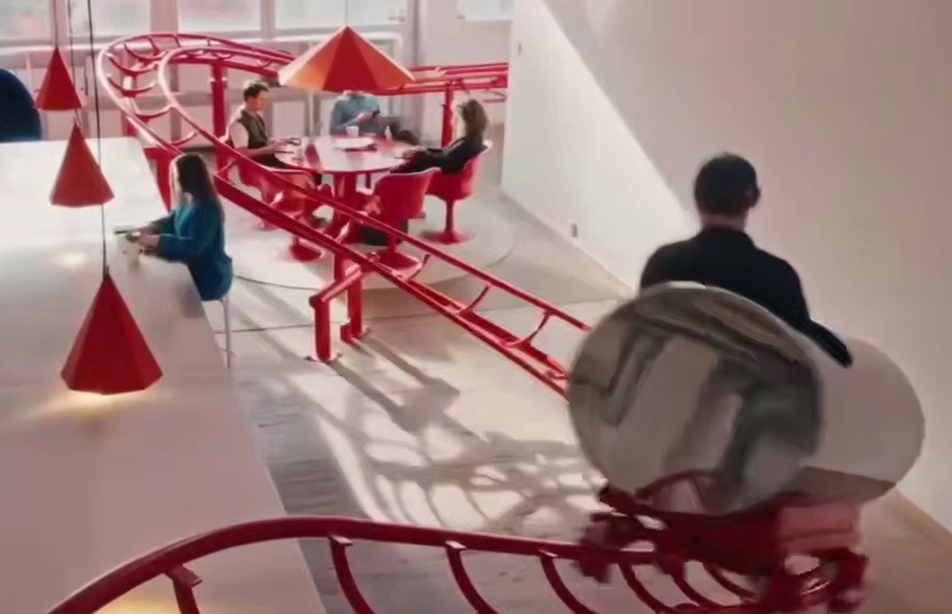 Так, прямо через все офисное пространство, включая кухню и зону отдыха, протянули трассу настоящих американских горок.