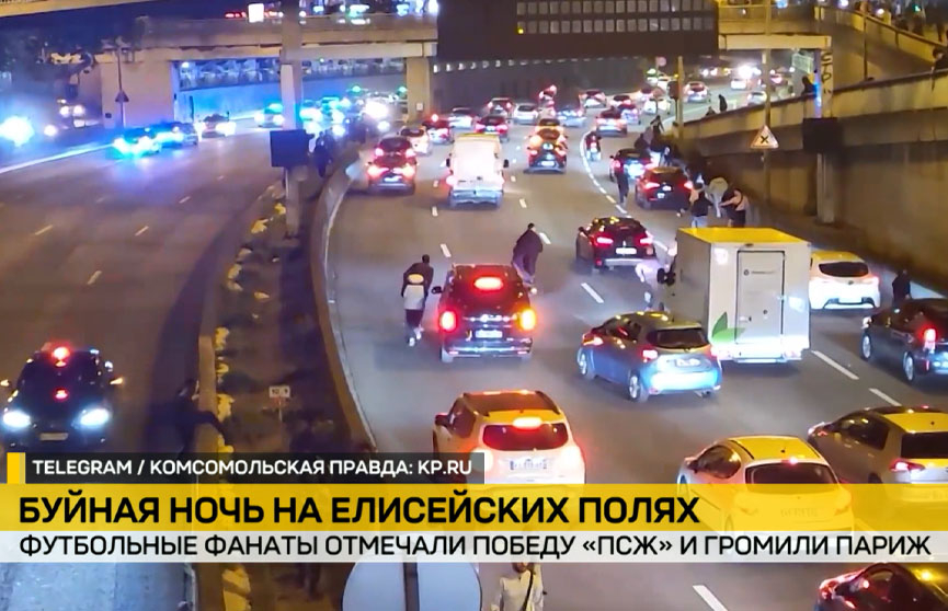 Прошлой ночью на Елисейских полях в Париже футбольные фанаты, отмечая победу ПСЖ над «Арсеналом», устроили беспорядки.