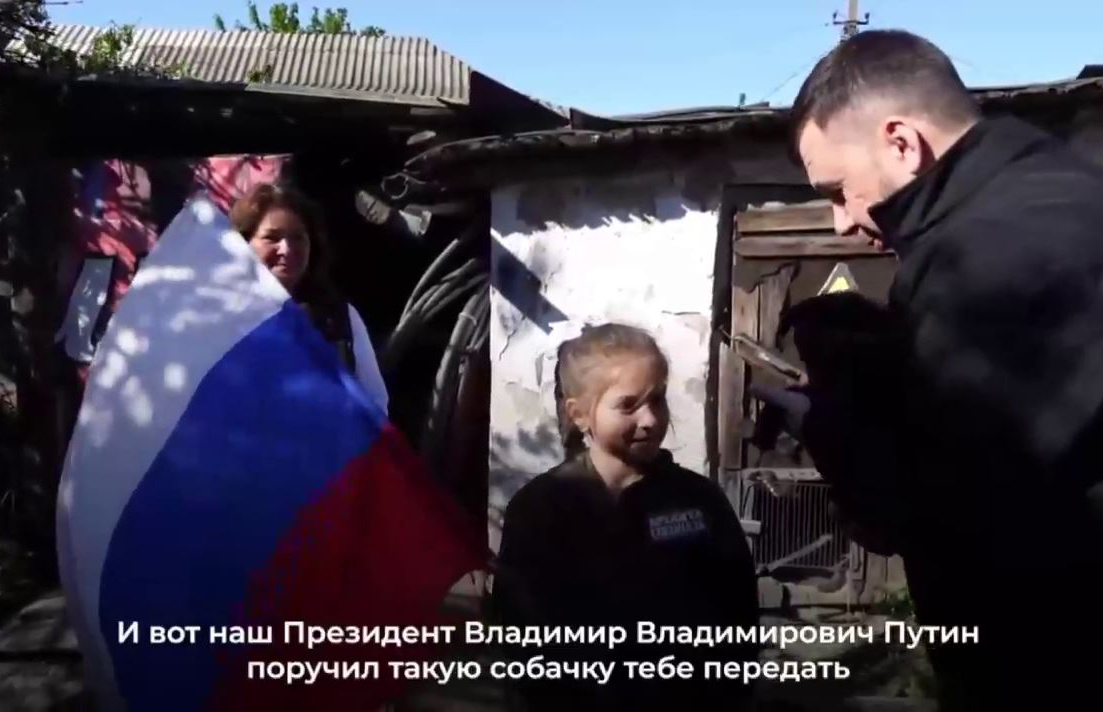 Маше из Макеевки, встречающей летчиков с флагом, подарили щенка по поручению Путина