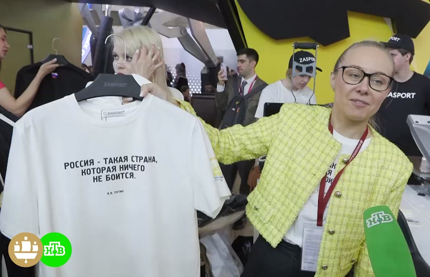 На ПМЭФ бесплатно раздают футболки с цитатами Владимира Путина