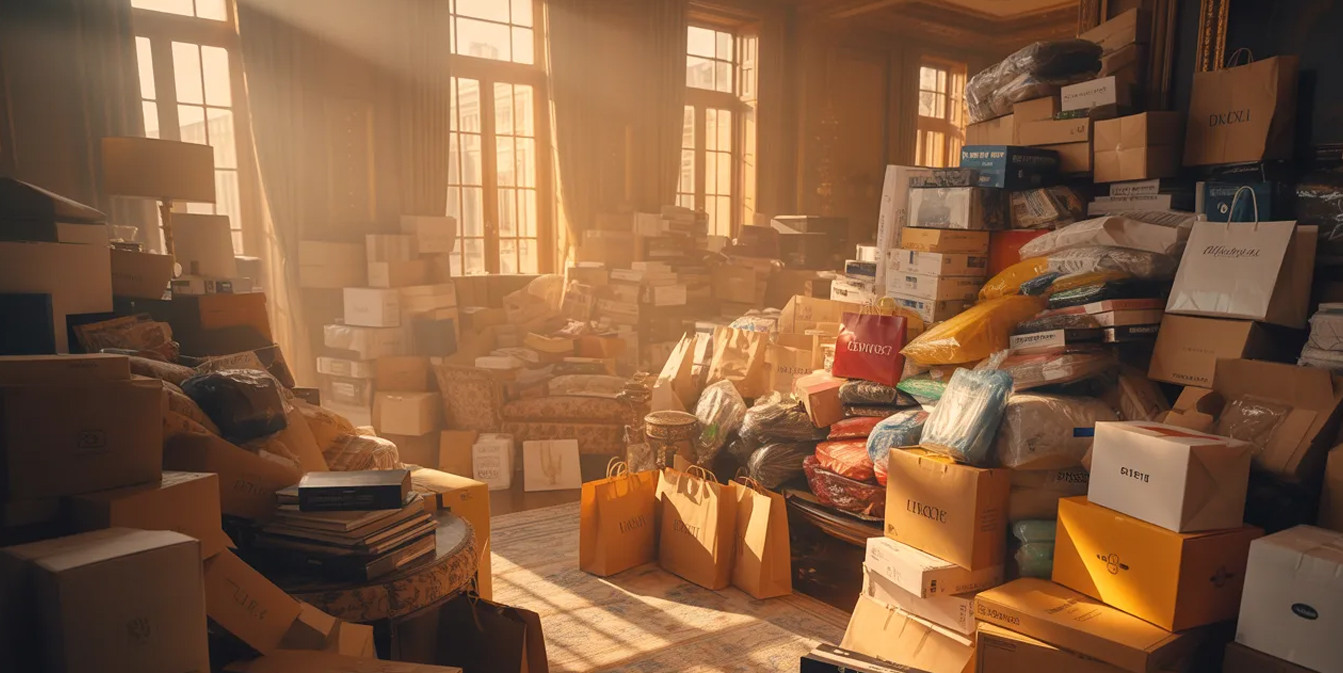 Жилище напоминало складское помещение: комнаты были забиты пакетами, коробками и товарами, причем значительная часть из них оставалась в нераспечатанном виде.