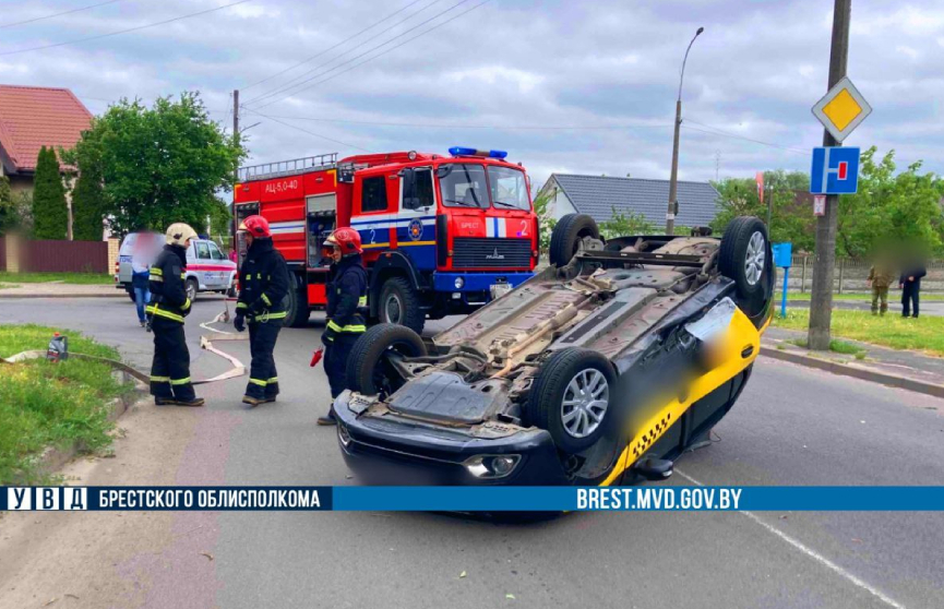 По предварительным данным, 55-летний житель Бреста, находясь за рулем автомобиля Ford, двигался по улице Краснознаменной. На перекрестке с улицей Шевченко, при выезде со второстепенной дороги, он не уступил дорогу автомобилю-такси Renault под управлением 28-летнего жителя Ивановского района, который ехал по главной дороге. В результате ДТП автомобиль-такси опрокинулся от удара.