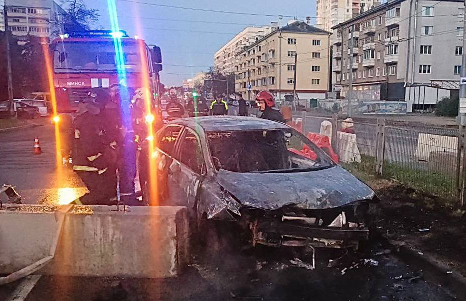 От сильного удара машина загорелась. По предварительным данным, причиной инцидента мог стать тот факт, что молодой человек заснул во время движения.