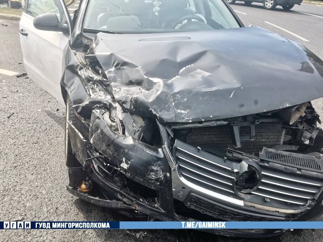 По предварительной информации, управляющая Volkswagen 24-летняя женщина проехала на запрещающий сигнал светофора и врезалась в Renault, который двигался по Партизанскому проспекту на зеленый свет.