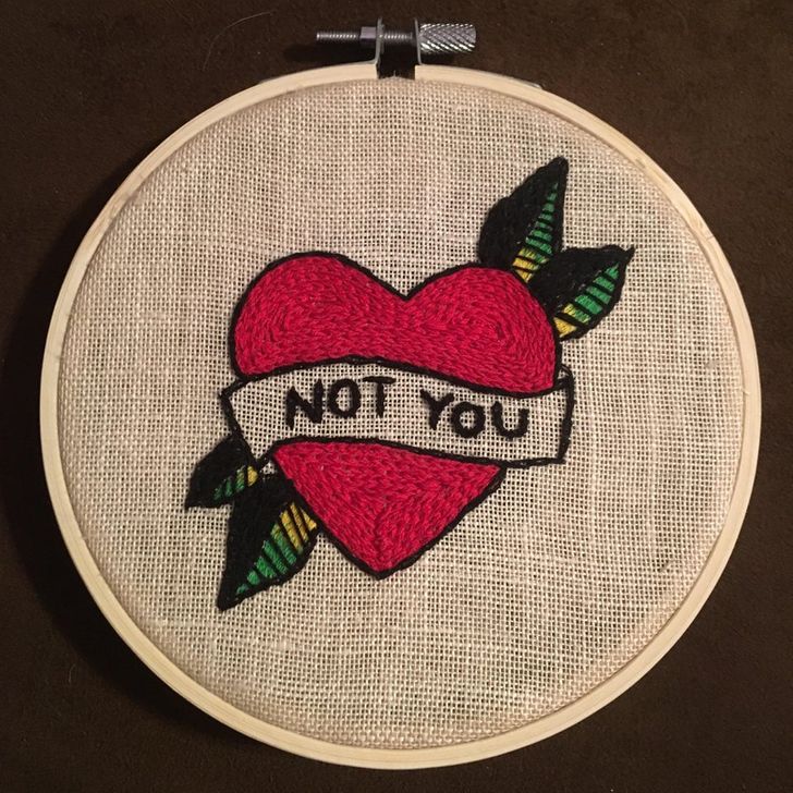 1. Девушка решила вышивать татуировки, а не набивать их на своём теле. Вот её первая работа.