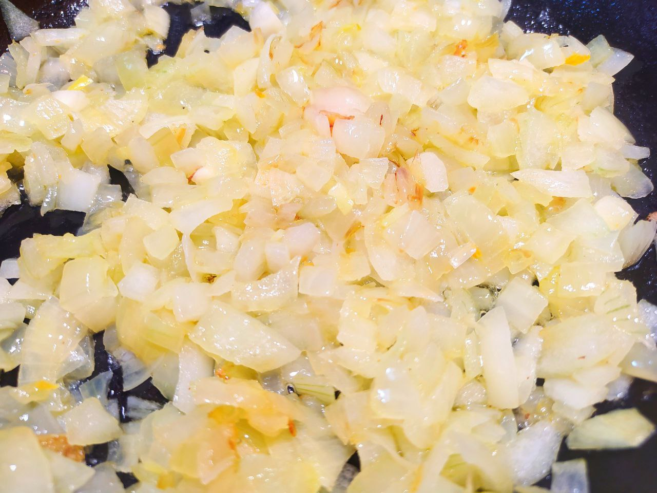3. Лук мелко нарезать и обжарить до золотистого цвета.