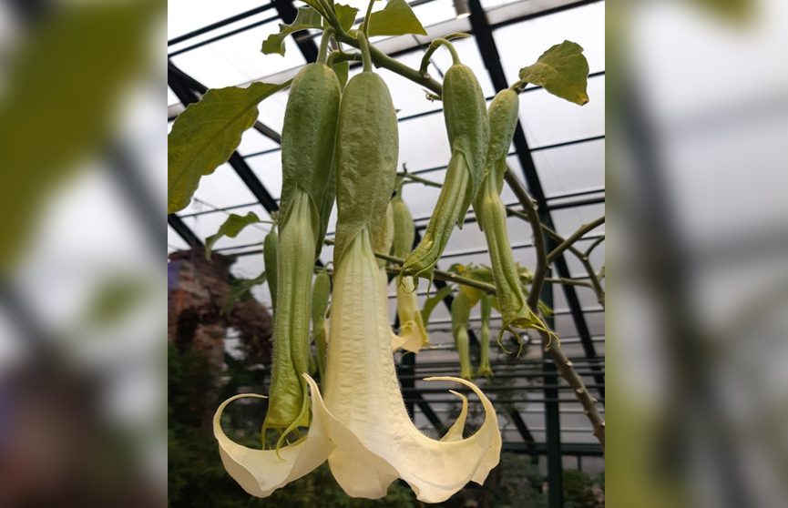 «Речь идет о бругмансии, также известной как "Трубы ангела", Дурманное дерево или Древесный дурман. Огромные, длиной до 50 см трубчатые цветки как бы смотрят вниз и распространяют вокруг себя насыщенный аромат. Бругмансия – ядовитое растение, причем ядовитые вещества содержатся во всех частях "Труб ангела"», – говорится в сообщении.