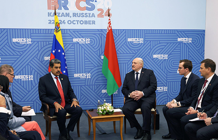 Президент Беларуси Александр Лукашенко 23 октября на полях саммита БРИКС во время встречи с лидером Венесуэлы Николасом Мадуро похвалил его за стойкость и несгибаемое мужество. Об этом информирует БЕЛТА.