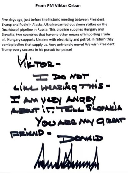 Президент США Дональд Трамп сильно разозлился из-за ударов ВСУ по нефтепроводу «Дружба». Об этом сообщил премьер-министр Венгрии Виктор Орбан, опубликовав на своей странице в Facebook ответное письмо главы Белого дома.
