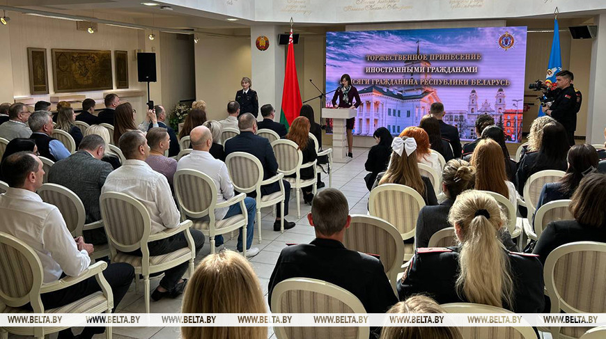 В Минской городской ратуше прошел торжественный прием, организованный ГУВД Мингорисполкома, в ходе которого 27 иностранцев официально приняли присягу гражданина Республики Беларусь, сообщает корреспондент БЕЛТА.