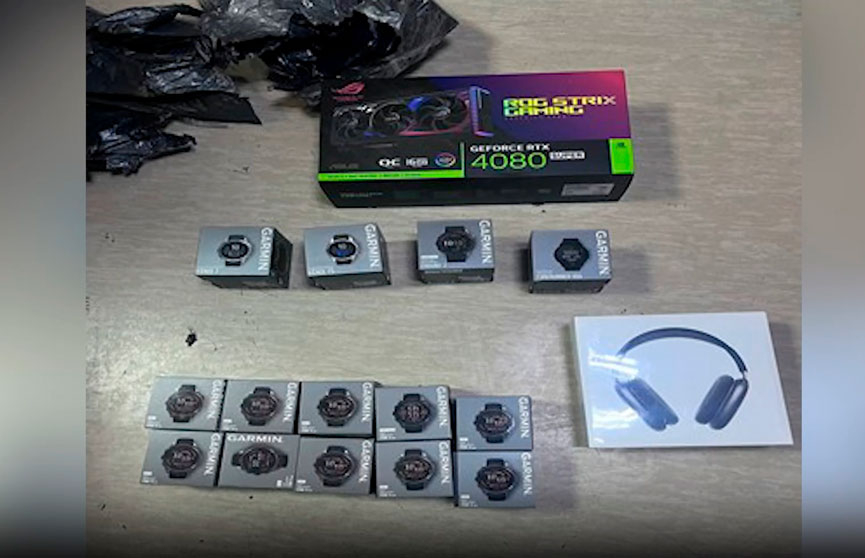 Водитель следовал на грузовом авто из Польши. Под прицепом он спрятал 3 коробки, обмотанные черной полиэтиленовой пленкой. Внутри находились 14 часов Garmin, наушники Apple Air Pods Max и видеокарта Nvidia GeForce RTX 4080 SUPER.