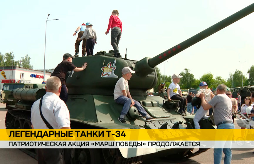 Сенно, Речица, Слоним. Теперь эстафету принял Кобрин. На площадке – танки Т-34, которые участвовали в параде 9 Мая в Минске. Сегодня легендарная техника – объект повышенного интереса. Здесь же и другие образцы – от бронетранспортеров и минометов до системы реактивного залпового огня. Это вооружение Брестского гарнизона.