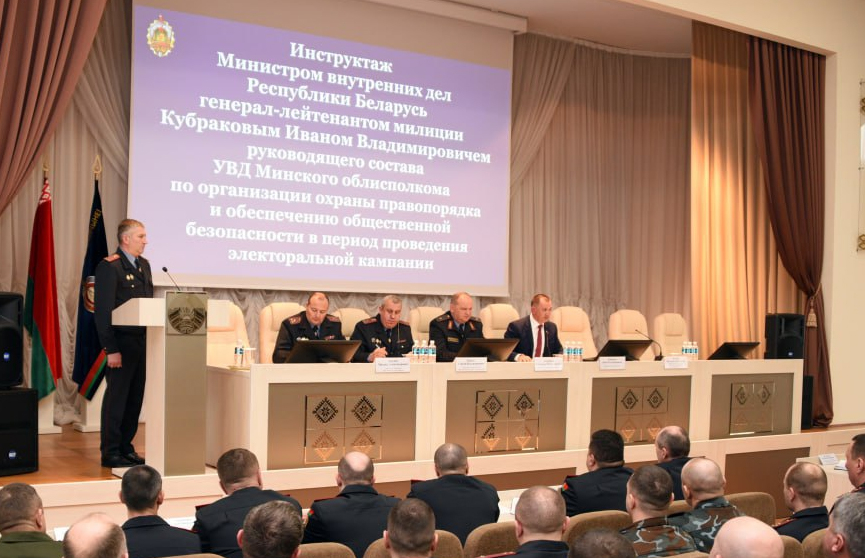 Инструктаж руководящего состава органов внутренних дел Минской области провел министр внутренних дел Республики Беларусь Иван Кубраков. Главной темой для обсуждения стала предстоящая в нашей стране электоральная кампания. Об этом сообщает Telegram-канал МВД Беларуси.