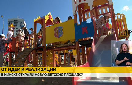 Новая современная игровая площадка открылась в Минске. Яркий игровой комплекс – один из победителей городского конкурса проектов гражданских инициатив.