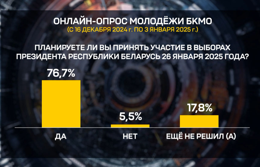 Среди задач, на которых должен сосредоточиться избранный Президент, молодые белорусы выделяют обеспечение мира и безопасности, рост благосостояния граждан, борьбу с инфляцией и ростом цен, экономический подъем и рост производства, укрепление позиций Беларуси на международной арене. Цифры показывают: молодежь осознает значимость электоральной кампании для определения своего будущего.