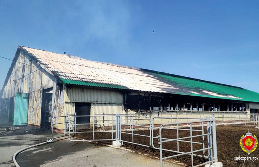 Пожар произошел в июне этого года. Из-за возгорания были эвакуированы 215 коров. Огонь повредил фронтон здания и кровлю, уничтожил оконные проемы на ней. Об этом информирует пресс-служба Государственного комитета судебных экспертиз.