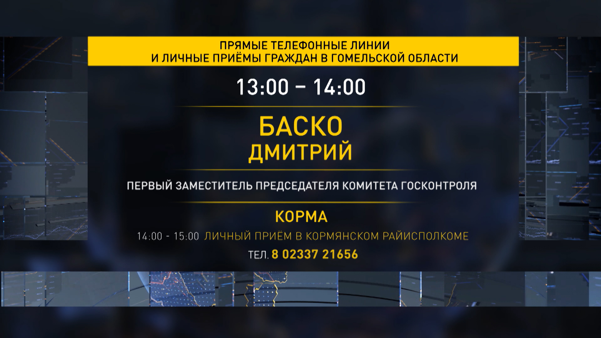 В Кормянском районе будет работать первый заместитель председателя Комитета Дмитрий Баско. Выслушает как по телефону, так и лично. Координаты – также на ваших экранах.