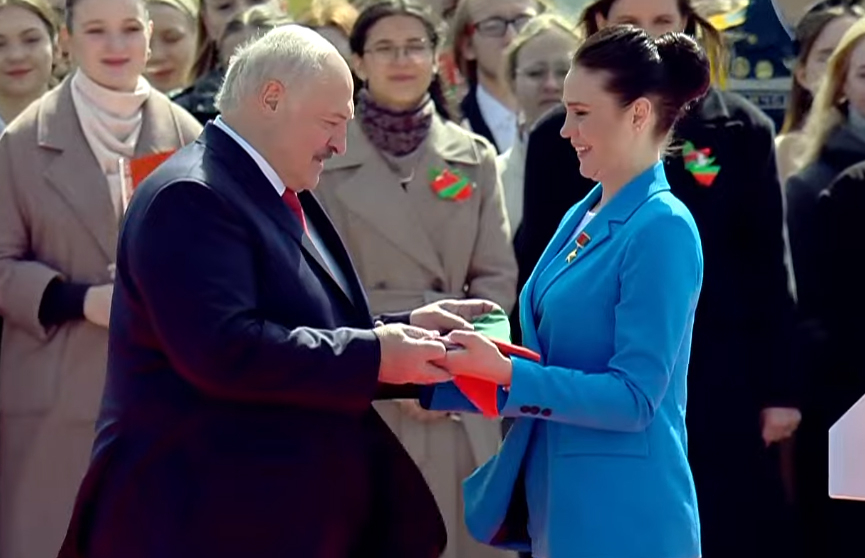 «Марина Василевская вместе с представителями молодежи произнесла клятву верности государственным символам, после чего военнослужащие роты почетного караула передали ей Государственный флаг, а Марина Василевская передала его Президенту. Этот государственный символ займет почетное место во Дворце Независимости. Флаг, который был передан, тот самый, который в 2024 году благодаря первой белорусской женщине-космонавту побывал на МКС, закрепив статус Беларуси как космической державы», – говорится в сообщении.