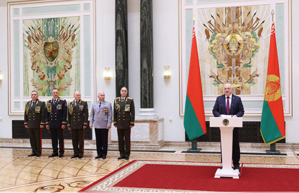 23 февраля, в День защитников Отечества и Вооруженных Сил Республики Беларусь, Александр Лукашенко за боевые заслуги в мирное время вручил государственные награды и генеральские погоны лучшим защитникам Отечества.