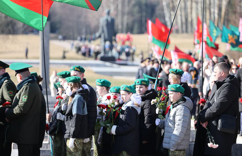 Сегодня к мемориалу – нескончаемый поток потомков, благодарных за мир на нашей земле. К подножию лег и венок от Президента Беларуси.
