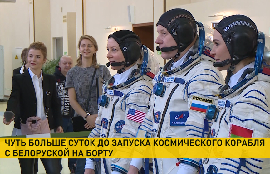 На финише не только техническая работа, но и подготовка членов экипажа. Непростой, но крайне интересный путь с достоинством прошли две белоруски – Марина Василевская – она в составе основного экипажа – и ее дублер Анастасия Ленкова. Сегодня на Байконуре волнительный день. Вечером – пресс-конференция с участниками полета. Огромная поддержка от всей страны и, конечно, родных. Сегодня они прибыли на Байконур. Борт организован по решению Президента Беларуси Александра Лукашенко.