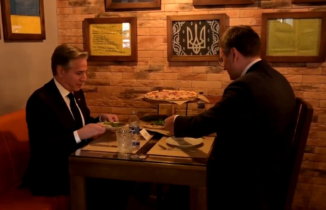 Дмитрий Кулеба, министр иностранных дел Украины, сводил приехавшего Энтони Блинкена, госсекретаря США, на рабочий ланч в пиццерию в Киеве. Об этом информирует РИА «Новости».