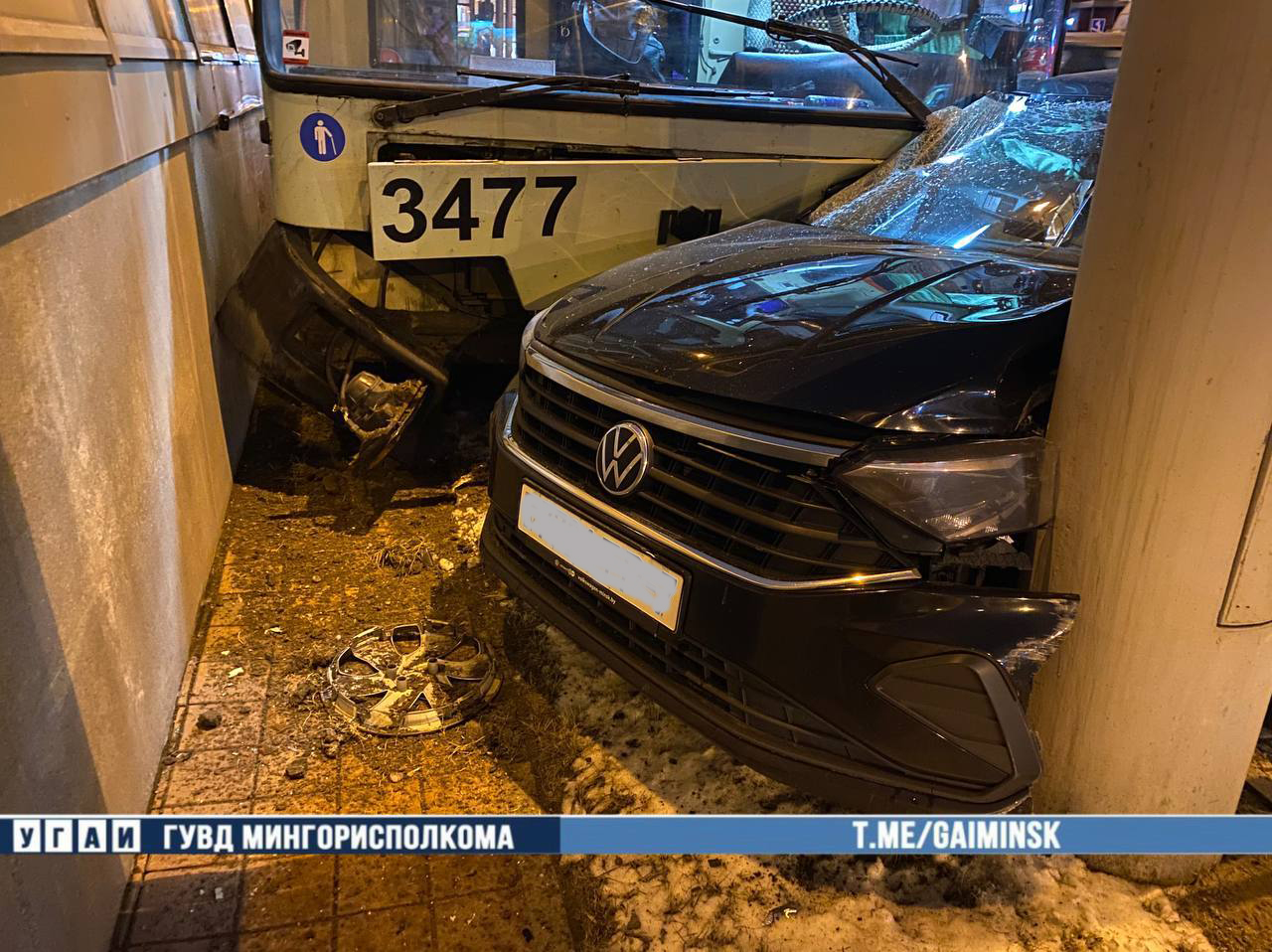 По предварительным данным, 7 февраля утром 51-летний руководитель автомобиля Volkswagen, направляясь по проспекту Дзержинского, не уступил дорогу во время поворота направо на улицу Хмелевского, что привело к столкновению с троллейбусом, движущимся в том же направлении.