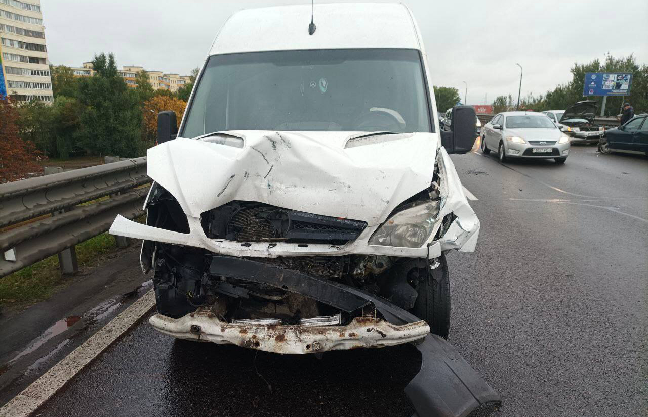 ДТП случилось утром 5 октября в районе 25-го километра внутреннего кольца МКАД – столкнулись Geely, Skoda и два Mercedes.