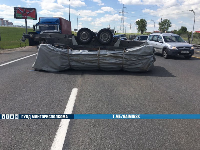 В результате ДТП сегодня на МКАД в Минске опрокинулся прицеп, сообщается в Telegram-канале УГАИ ГУВД Мингорисполкома.