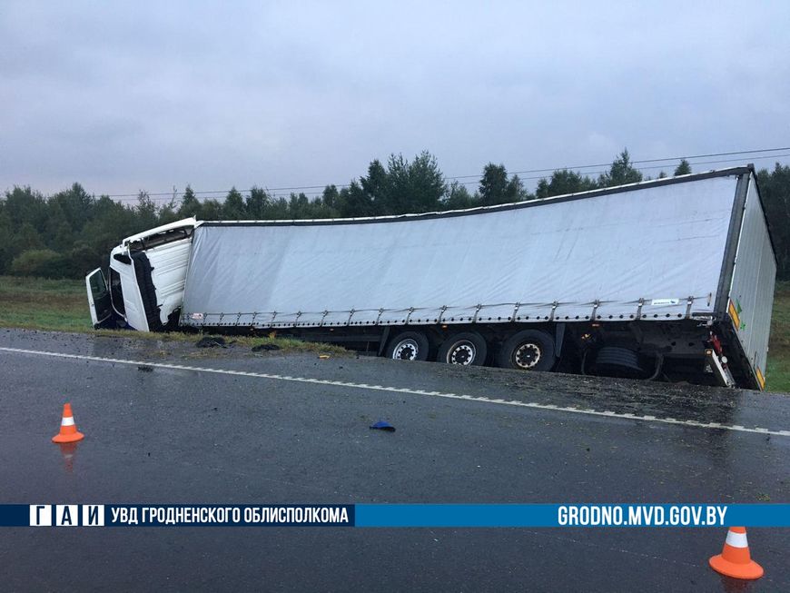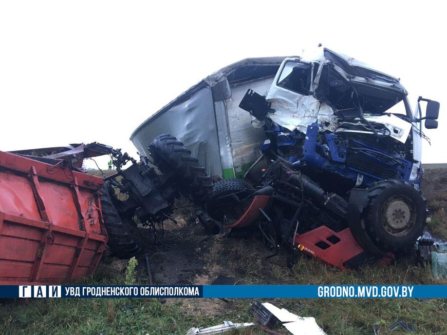 Авария произошла на 156-м км трассы Минск – Гродно. За рулем большегрузного автомобиля находился 52-летний водитель из Польши. Он двигался в крайней правой полосе дороги в сторону Минска. В какой-то момент фура столкнулась с попутным трактором МТЗ с прицепом сена. Машины от удара вылетели в кювет.