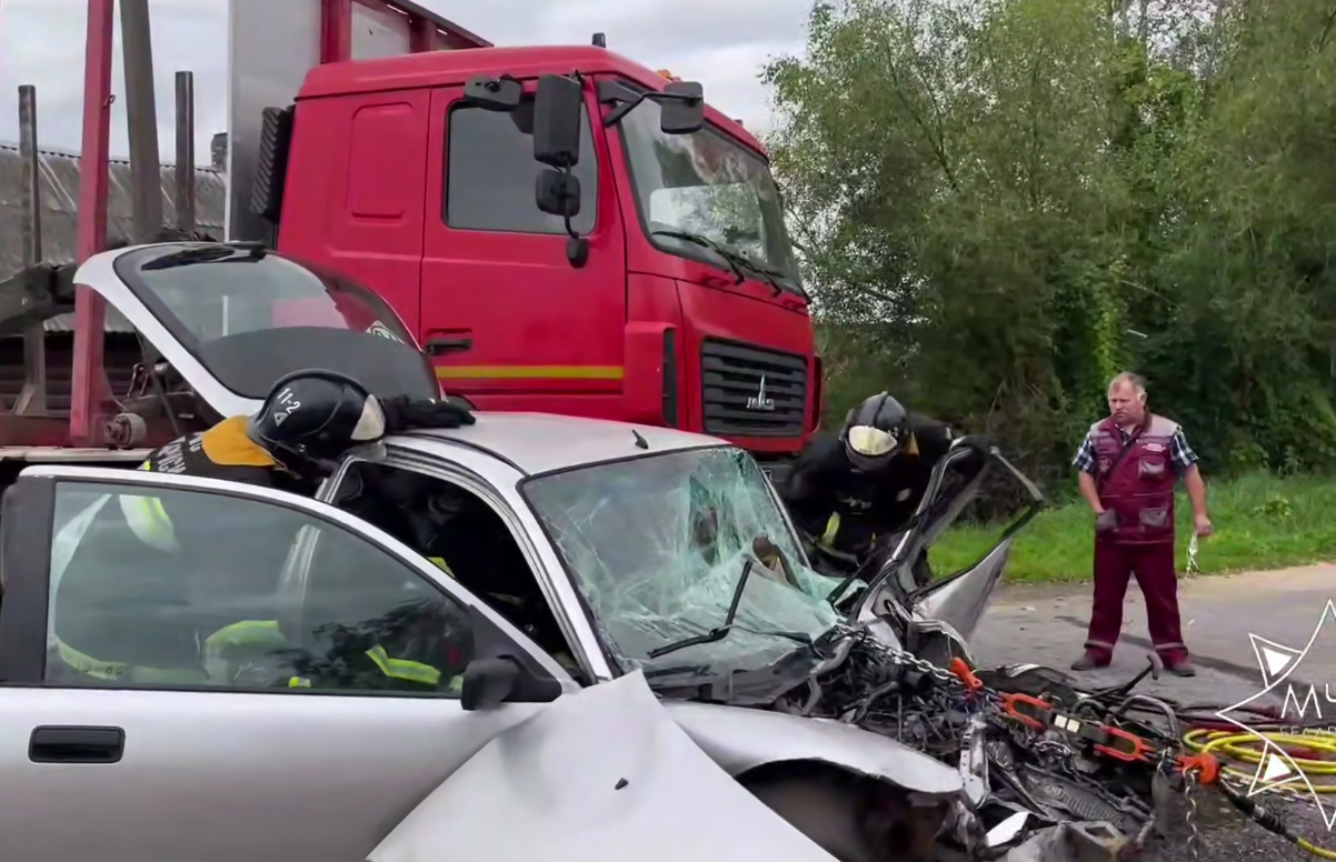 Легковушка врезалась в лесовоз в Докшицком районе: спасатели вытащили из покореженной машины женщину-водителя