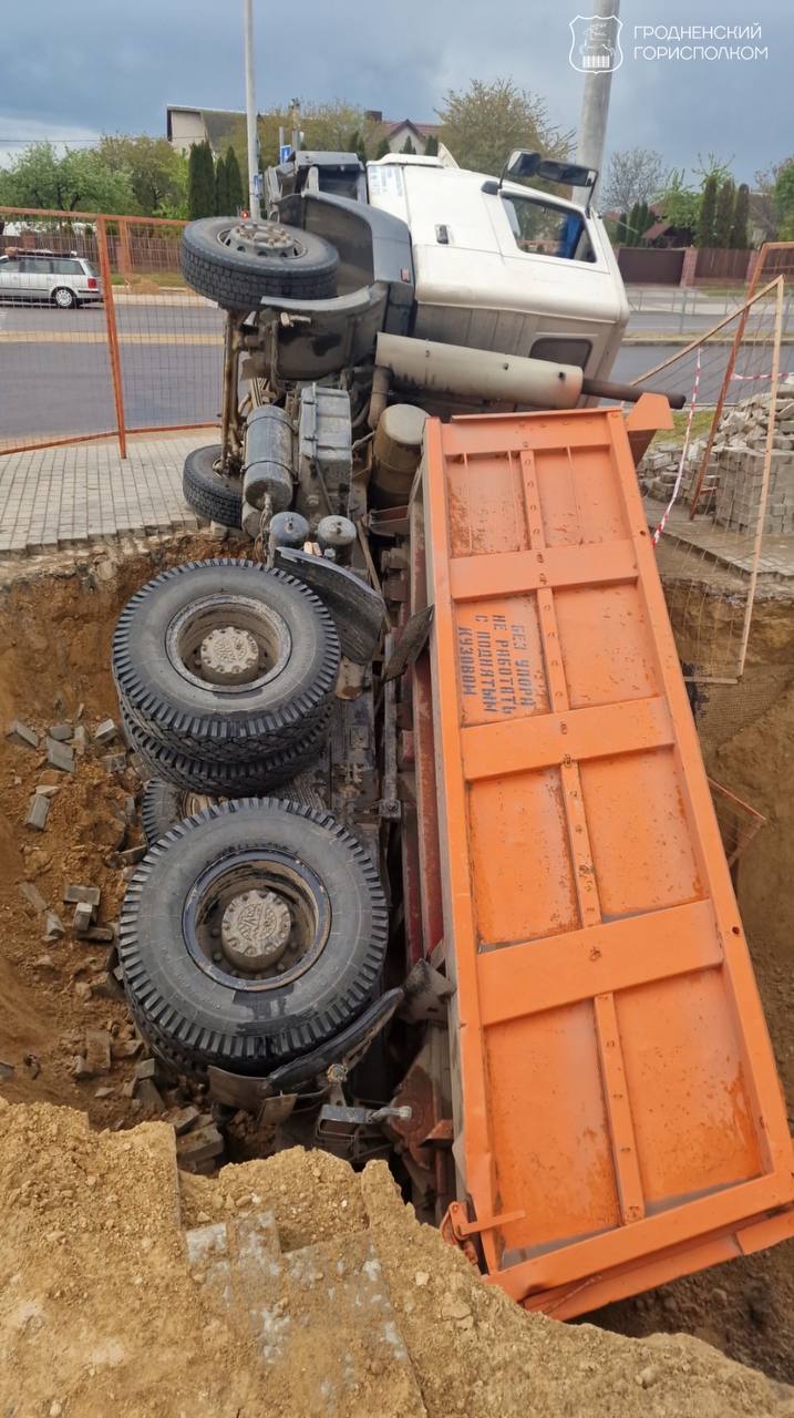 МАЗ провалился под землю в Гродно