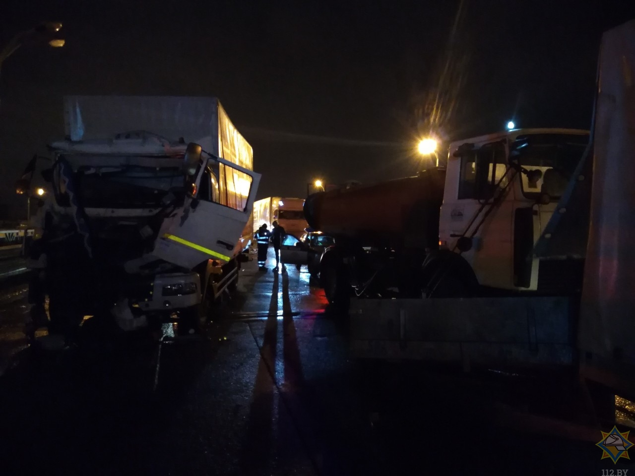 Ночью 18 января на Минской кольцевой автодороге МАЗ въехал в машину дорожных рабочих, сообщили в МЧС.