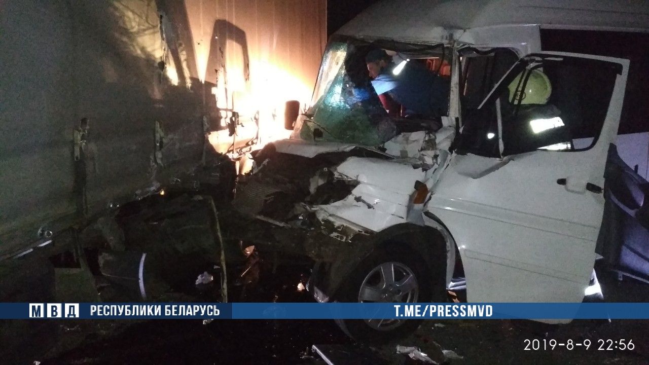 Серьёзная авария под Ивье: микроавтобус с пассажирами столкнулся с фурой