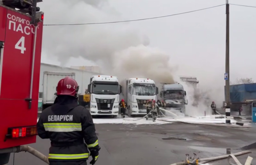 На «Беларуськалии» произошел пожар: загорелись два грузовика