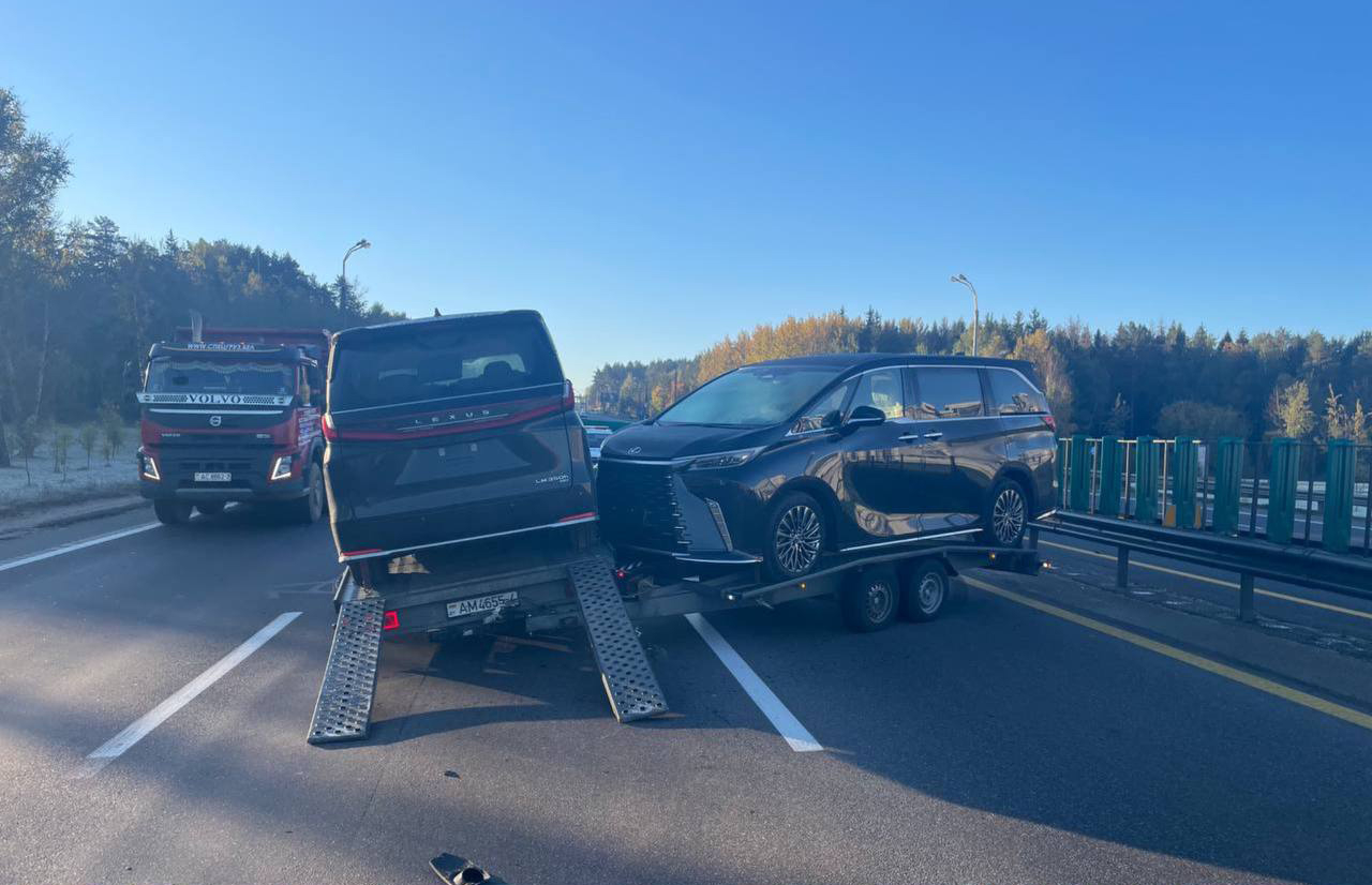 На МКАД грузовик, перевозивший автомобили Lexus, и врезался в легковушку Chevrolet