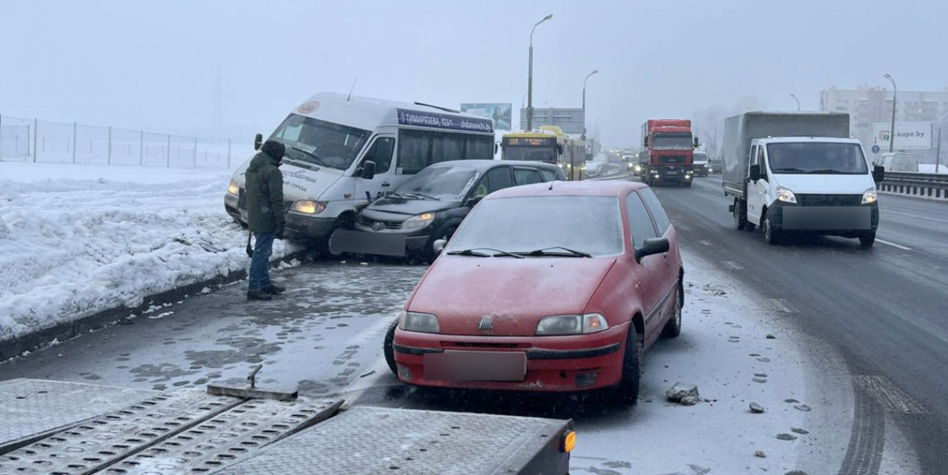 По предварительной информации, 46-летняя водитель автомобиля Renault, начиная движение от остановочного пункта «Ландера», при перестроении не убедилась в безопасности и совершила столкновение с автомобилем Fiat. От удара Renault отбросило на стоявшее рядом маршрутное транспортное средство. К счастью, в нем в этот момент не было пассажиров.